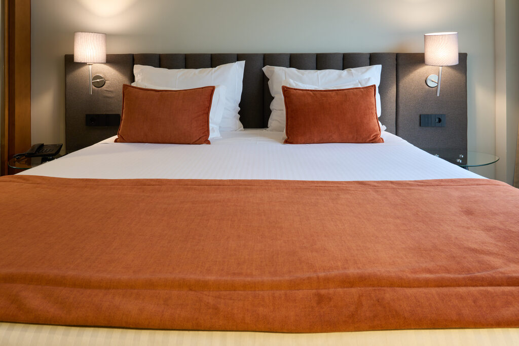 Quarto Duplo com cama de casal, ar condicionado, mini-bar, telefone, cofre, WIFI, secretaria, serviço de despertar, televisão. WC com Banheira, conjunto de amenities Damana e secador de cabelo.